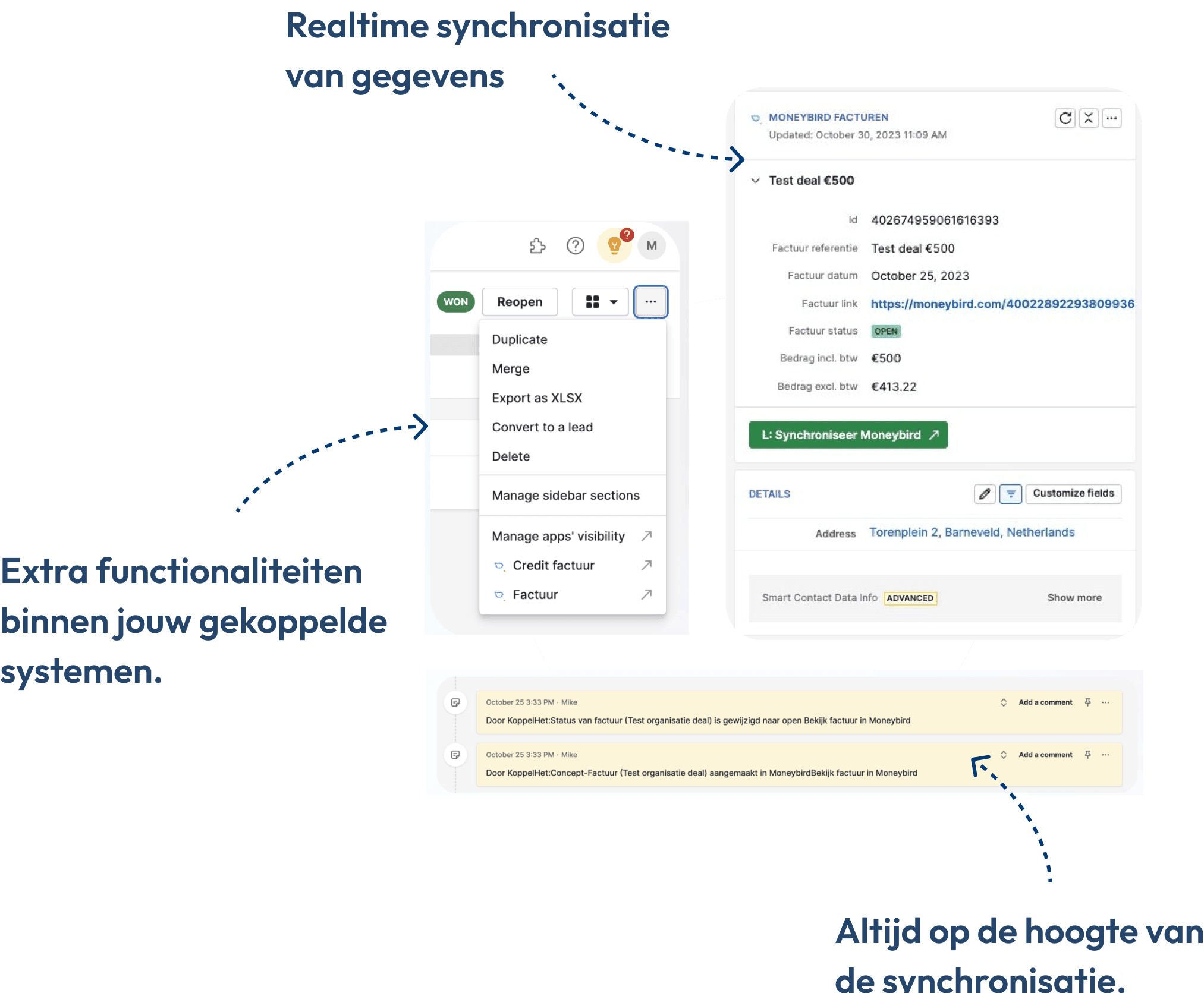 Met de HubSpot – Exact Online koppeling synchroniseer je bedrijven, contacten en deals van HubSpot naar Exact. Alle contacten en bedrijven vanuit HubSpot worden gesynchroniseerd op basis van jouw gekozen status naar Exact. Daarnaast maak je vanuit HubSpot automatisch een factuur aan in Exact Online op basis van de deal. Via KoppelHet stel je gemakkelijk in wanneer jouw deal uit HubSpot moet worden gesynchroniseerd.
